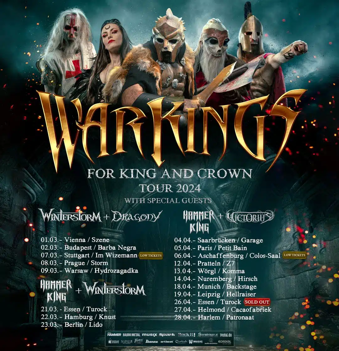 We’ll march with the mighty Warkings on their “For King and Crown” tour in March (with Winterstorm) and April (with Victorius) 2024!